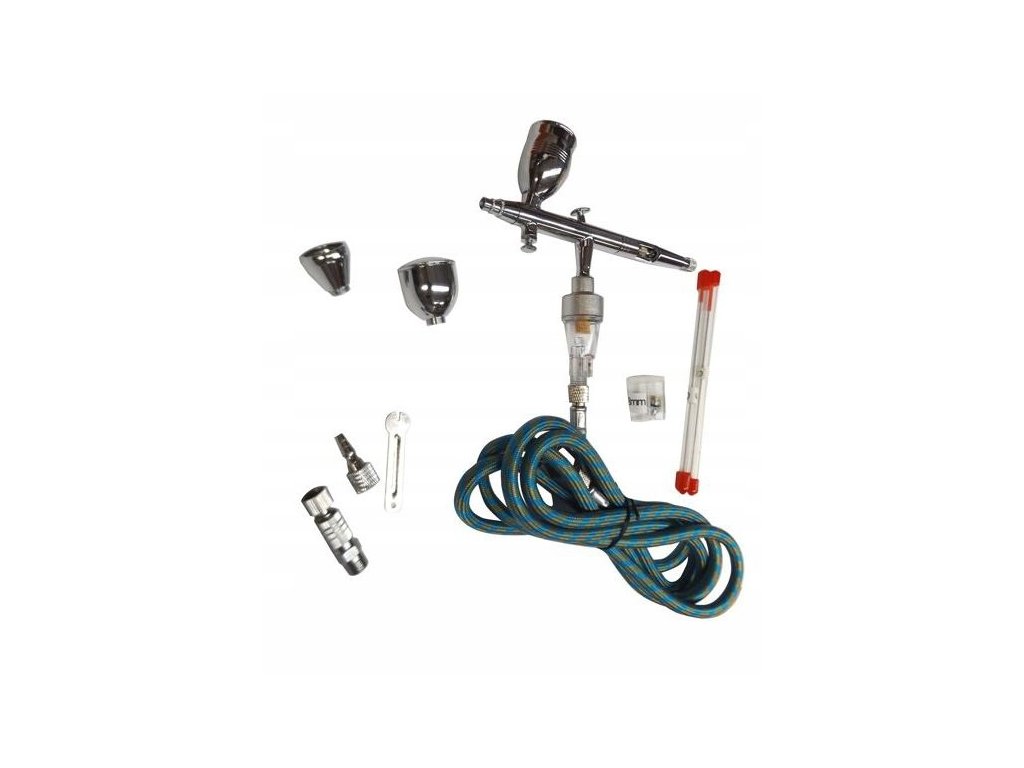 Profesionální airbrush pistoli trysky s jehlami 0,3, 0,5 a 0,8 mm. Tělo pistole je vyrobeno výhradně z kovu, díky čemuž je pistole odolnější vůči mechanickému poškodeniu.Jedná se o stříkací pistoli s dvojí funkcí, což znamená, že stisknutím tlačítka nastavujeme množství přiváděného vzduchu (dole a nahoře), jakož i množství barvy (vzadu a vpředu). Celokovové tělo se dobře drží v ruce a je také poměrně snadné na údržbu.