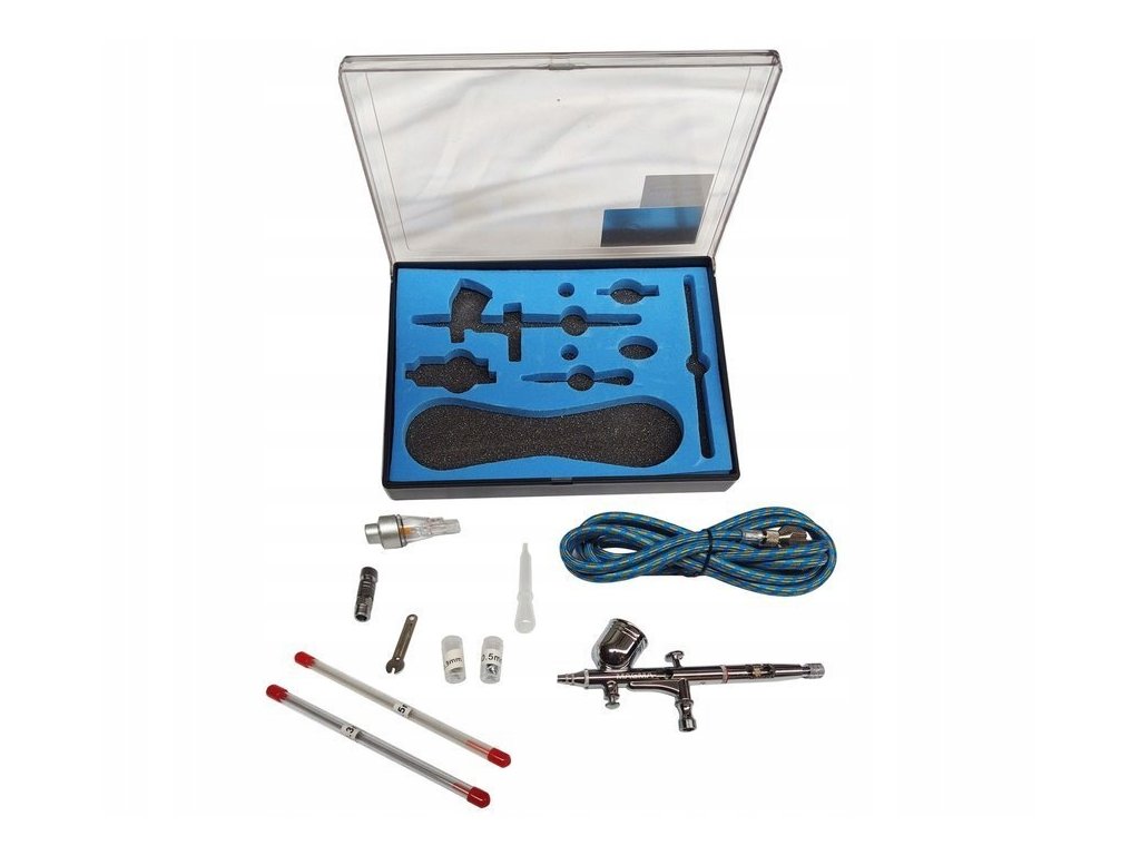 Profesionální airbrush pistoli s tryskami 0,2 0,3 0,5mm. Tělo pistole je vyrobeno výhradně z kovu, díky čemuž je pistole odolnější vůči mechanickému poškodeniu. Jedná se o dual-funkční Airbrush, což znamená, že obě tlačítka pro nastavení hlasitosti přiváděného vzduchu (se pohybuje nahoru a dolů), stejně jako množství laku (se pohybuje dopředu a dozadu). Celokovové tělo se dobře drží v ruce a je také poměrně snadné na údržbu.