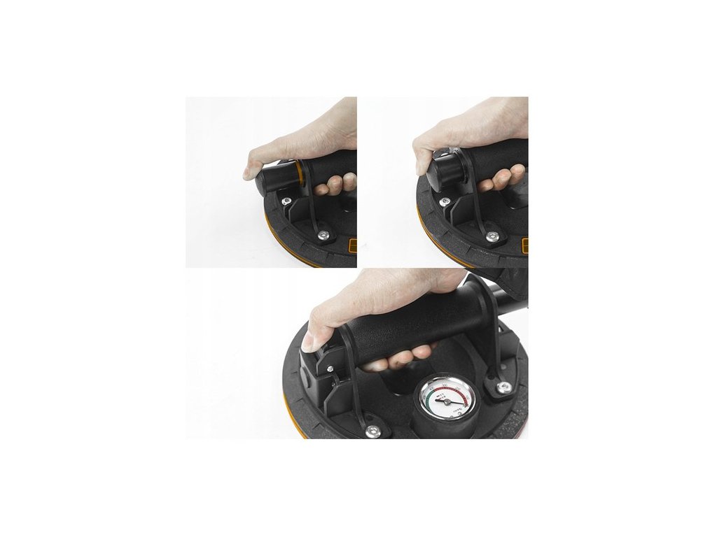 Vakuová přísavka je vybavena vakuovou pumpou pro pevnější uchopení a tlačítkem pro rychlé uvolnění. Je určena k přenášení různých předmětů přemisťování oken, dlaždic, desek, zrcadel, a dalších choulostivých materiálů bez rizika poškození. ., jejichž hmotnost nepřesahuje 200 kg. Hliníkové tělo a gumová přísavka zajišťují bezpečné a spolehlivé přenášení těchto předmětů. Široké spektrum využití činí přísavku ideální pro profesionály i amatéry.