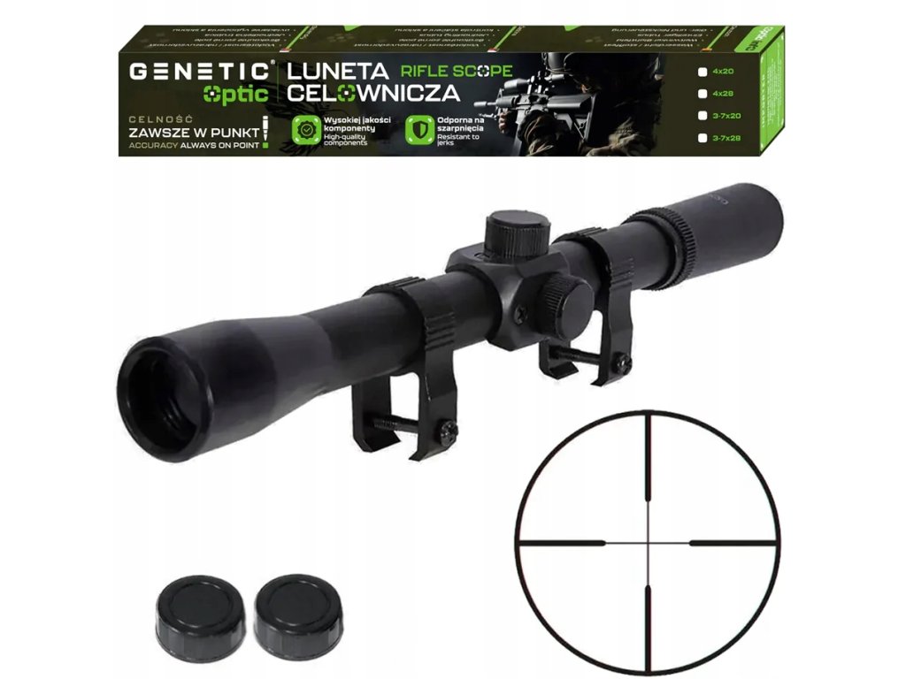 Zvyšte svou střeleckou přesnost s puškohledem 4×20. Navržený pro přesné míření, nabízí 4násobné zvětšení, které umožňuje snadné zaměření cíle na delší vzdálenosti. Odolná konstrukce a nárazuvzdornost zaručují spolehlivost v každých podmínkách. Snadno se montuje a používá, což z něj dělá ideální volbu jak pro začátečníky, tak pro zkušené střelce.