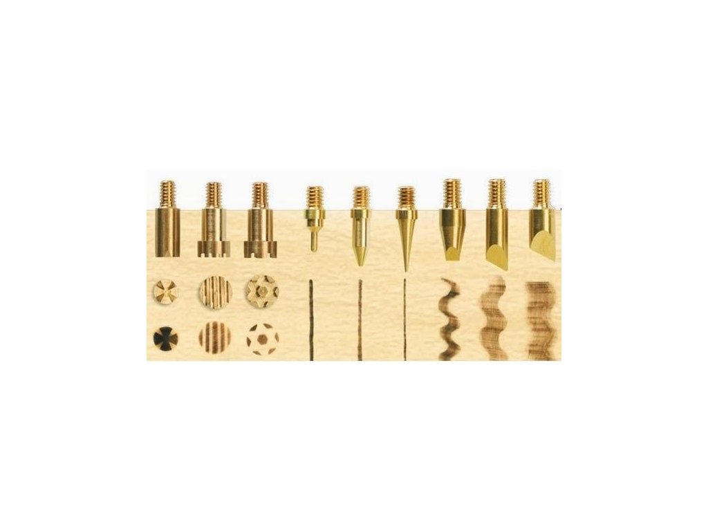 Vypalovací pájka vhodná např. pro vypalování do měkkého dřeva a jiných materiálů k vytváření různých dekorací. Součástí sady je navíc velké množství hrotů různých tvarů. Vše je zabaleno v praktickém plastovém kufříku jako set na pyrografiku.