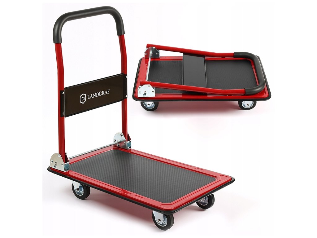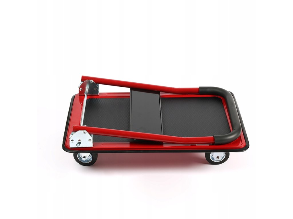 Vozík je vybaven protiskluzovou plošinou a na okrajích je opatřen ochrannou gumou pro tlumení nárazů. Díky skládací rukojeti zabírá po složení velmi málo místa.