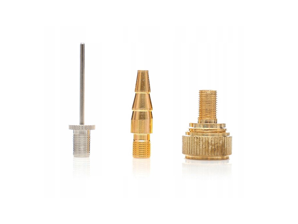 Všechny prvky sady jsou charakteristické vysokým, perfektním zpracováním. V sadě 3 koncovky, které jsou užitečné, mimo jiné pro nafukovaní míčů, člunů, kol automobilů, hraček, matrací.