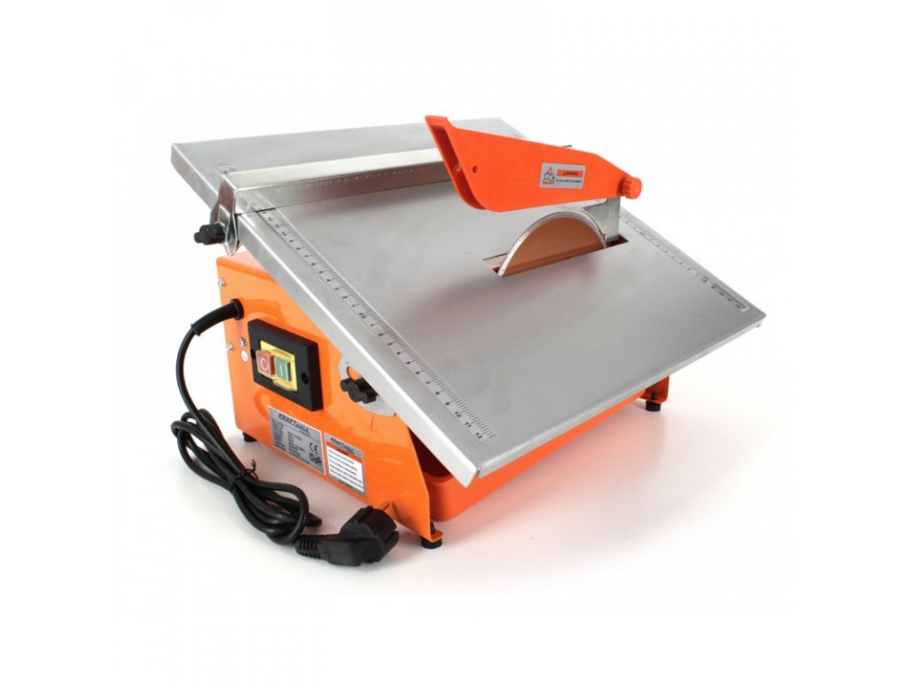 Kraft & Dele KD577 stolná kotúčová píla 1800W. Vybaveno diamantovým kotoučem. Velmi lehká - lze je snadno přemístit. Stůl je vyroben z nerezové oceli. Po použití příslušného kotouče může být zařízení použito jako řezačka dřeva. Disponuje: nastavení sklonu, měřítko stupňů, úhloměr, hliníkový pracovní stůl.