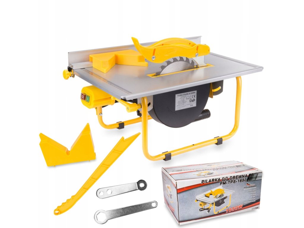 Stolní pila na dřevo POWERMAT PM-TPS-1650 je určena pro příčné a podélné řezání různých druhů dřeva, sádrokartonových desek, desek, nábytkových desek a umělých materiálů.