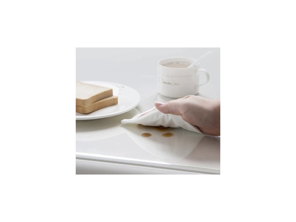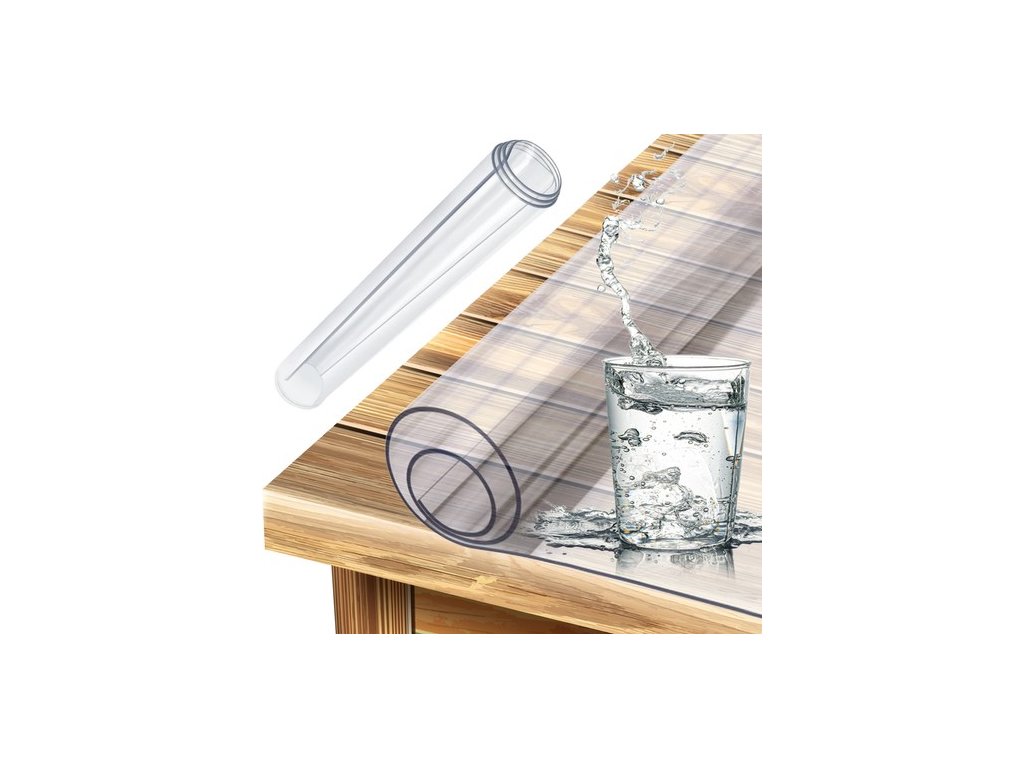 Skleněný efekt: Podložka je dokonale průhledná a svým vzhledem připomíná skleněnou desku. Efektivně chrání stoly, lavice a další povrchy před poškozením, oděry, poškrábáním a rozlitými nápoji.