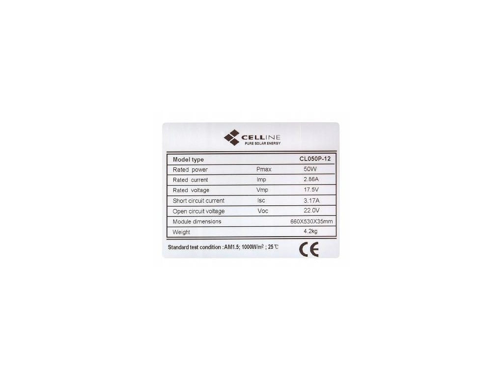 FOTOVOLTAICKÝ PANEL CL020-12P S VÝKONEM 50W Rozměry: 660x530x35mm