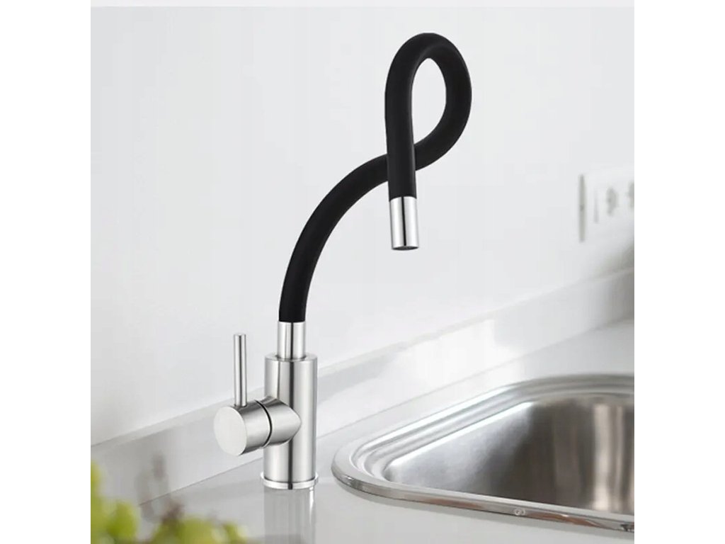 FLEXIBILNÍ OTOČNÝ VÝTOK 360 STUPŇŮ – umožňuje libovolné nastavení výpusti v rozsahu 360 stupňů pro pohodlné používání. Přizpůsobíte ji s vysokou přesností výšce a rozsahu vodního paprsku. Umožňuje bezproblémové nalévání vody např. do velkého hrnce. Flexibilní výtok je také skvělým řešením, když nemáme místo pro vícekomorový dřez. Skvěle poslouží také pro umyvadla, která jsou pod oknem, při otevírání nebude problém.