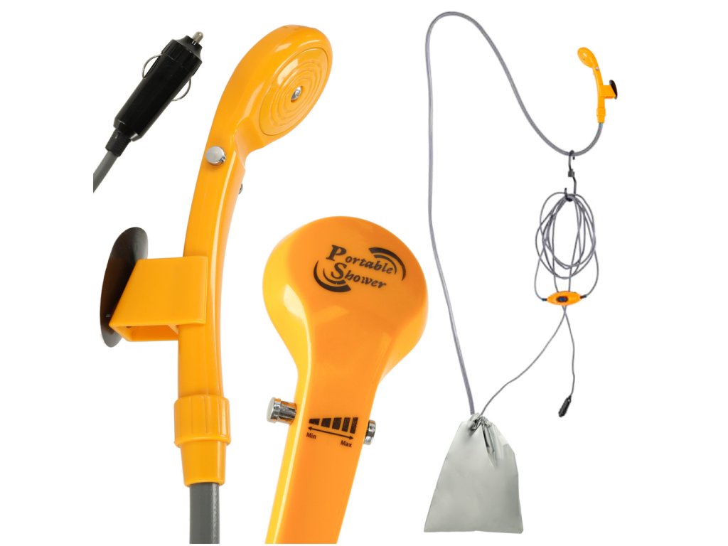 Přenosná turistická sprcha je nepostradatelné zařízení pro milovníky cestování, kempování, táboření nebo turistiky. Díky napájení 12V ji lze snadno připojit k autozásuvce, což umožňuje rychlé a pohodlné používání tekoucí vody kdekoli.
